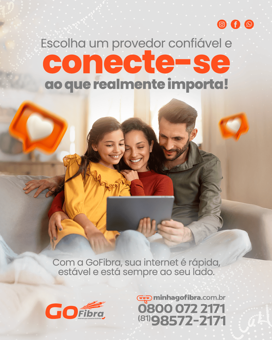 Na GoFibra, acreditamos que a internet vai muito além da velocidade. Ela aproxima pessoas, impulsiona sonhos e transforma rotinas. Por isso, entregamos mais do que conexão — entregamos possibilidades.